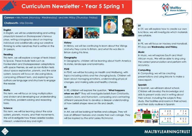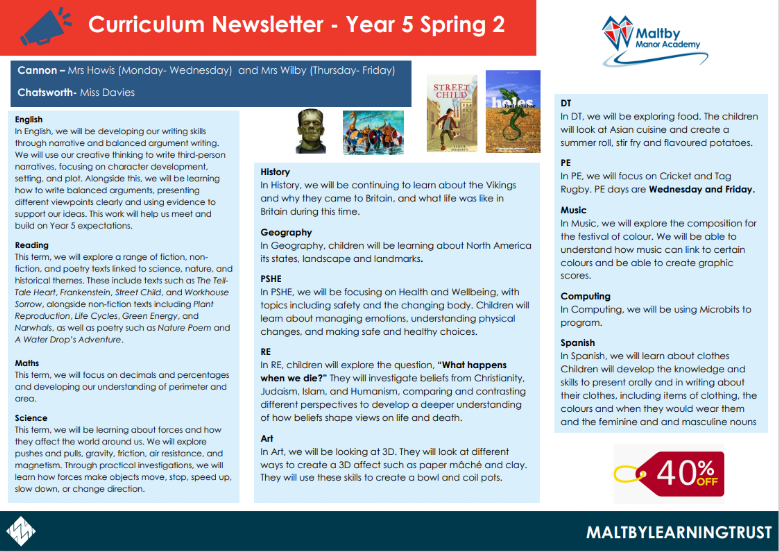 Welcome to our Year 5 page! Here you can find our half-termly curriculum newsletter with details of what we are learning this term. You can also explore our experience roadmaps, which show the exciting opportunities and additional experiences designed to build confidence, curiosity, independence and ambition as children progress through school.